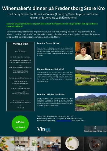 Vinea Nordic og Fredensborg Store Kro inviterer til winemaker’s dinner med Rémy Gresser fra Domaine Gresser (Alsace) og Xavier Logette fra Château Gigognan & Domaine La Ligière (Rhône)